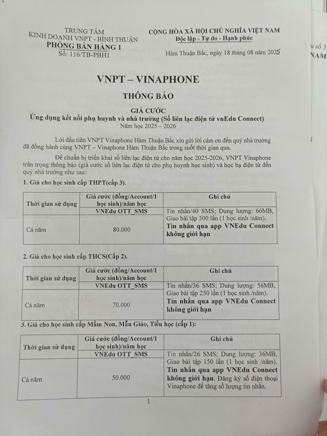 Nhận thông báo quan trọng: lịch kiểm tra, lịch thi, thời khóa biểu, thay đổi tiết học.