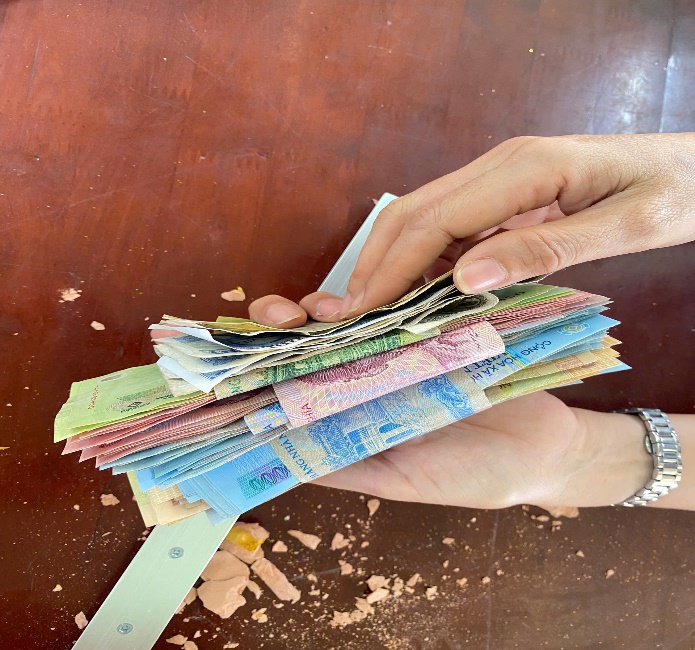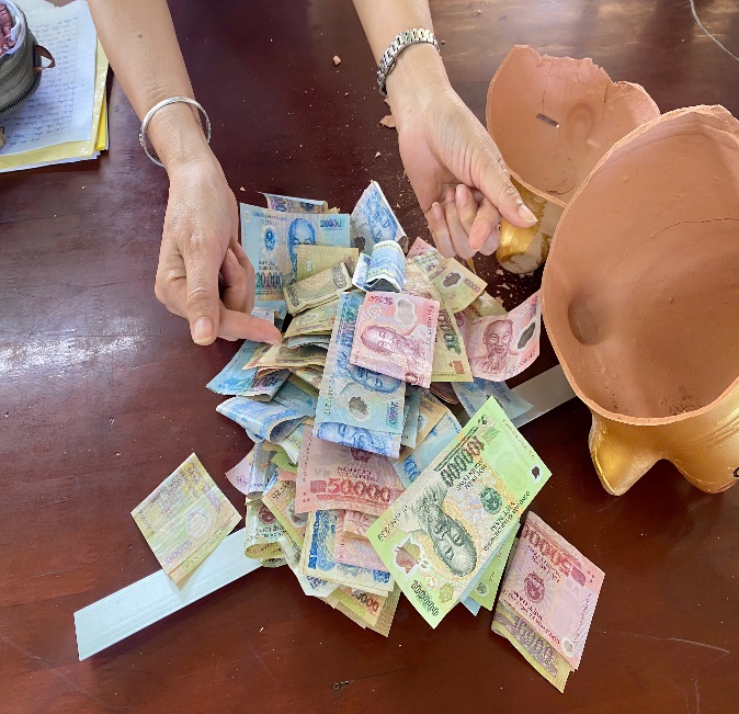 Toàn bộ số tiền thu được 3.050.000 đồng từ việc nuôi heo đất của Hội đồng Sư phạm sẽ được dùng để mua các nhu yếu phẩm như gạo, mứt tết hoặc trao những suất học bổng ý nghĩa cho các em.