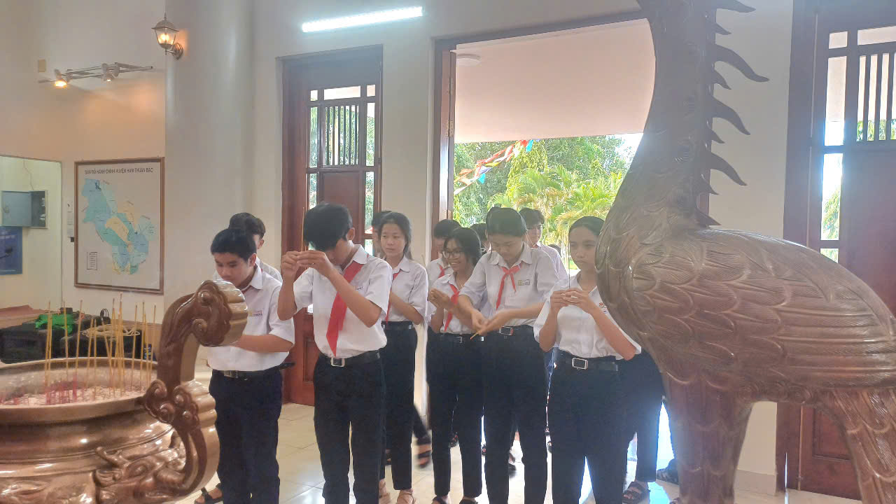 * Ngày 03/4/2025 Liên Đội tổ chức cho 40 bạn học sinh khối 9 thực hiện "Hành trình tìm về địa chỉ đỏ" tại nhà Truyền thống huyện và nhà bia ghi tên liệt sĩ huyện.