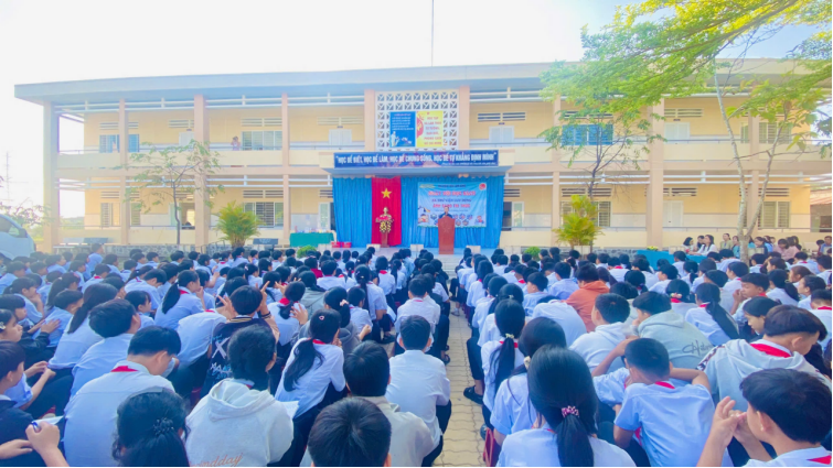 Nhằm hưởng ứng Ngày Sách và Văn hoá đọc Việt Nam, đồng thời lan tỏa niềm đam mê đọc sách trong học sinh, sáng ngày 27/3/2026, Trường THCS Thuận Minh đã phối hợp với Thư viện tỉnh Bình Thuận tổ chức thành công Ngày hội đọc sách với chủ đề “Ánh sáng tri thức”. Tham dự chương trình có Ban Giám hiệu nhà trường, đại diện Thư viện tỉnh Bình Thuận, toàn thể cán bộ, giáo viên, nhân viên cùng đông đảo học sinh toàn trường.