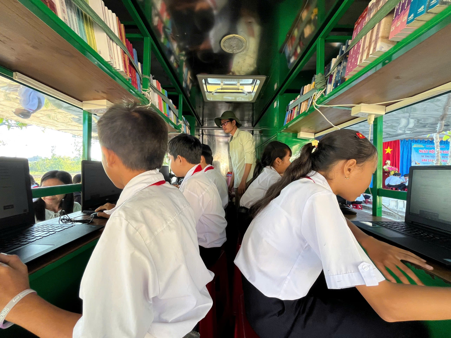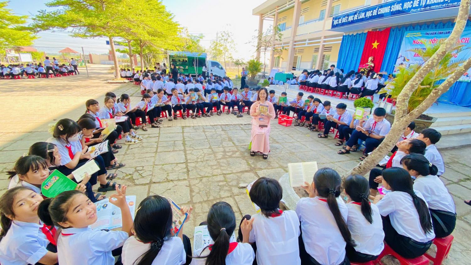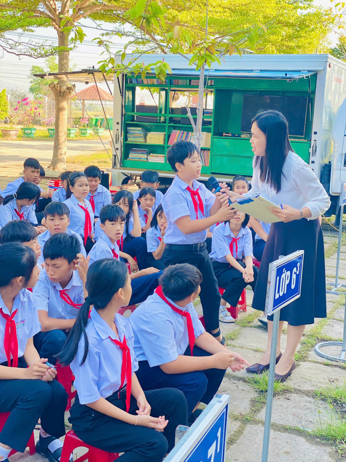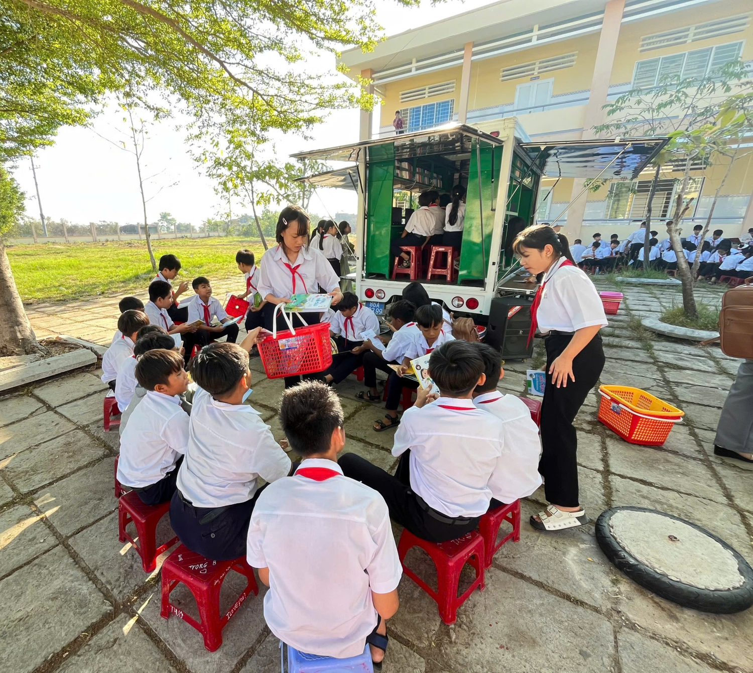 Đặc biệt, với sự hỗ trợ của xe thư viện lưu động, học sinh được tiếp cận với nhiều đầu sách phong phú, hấp dẫn. Các lớp tổ chức đọc sách theo nhóm, tạo nên không gian học tập thân thiện, tích cực.