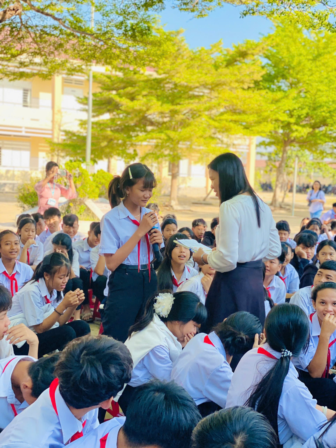 Bên cạnh đó, hoạt động hỏi – đáp kiến thức và trò chơi tập thể đã thu hút sự tham gia nhiệt tình của học sinh, giúp các em vừa học vừa chơi, phát triển tư duy và kỹ năng sống.